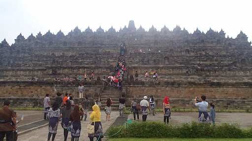Ludzie na tle Borobudur