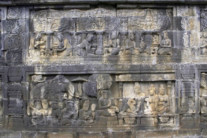 Borobudur to ogromna i bogato zdobiona świątynia buddyjska w Indonezji. Nie posiada wnętrza. Posiada wiele posągów Buddy oraz liczne stupy.