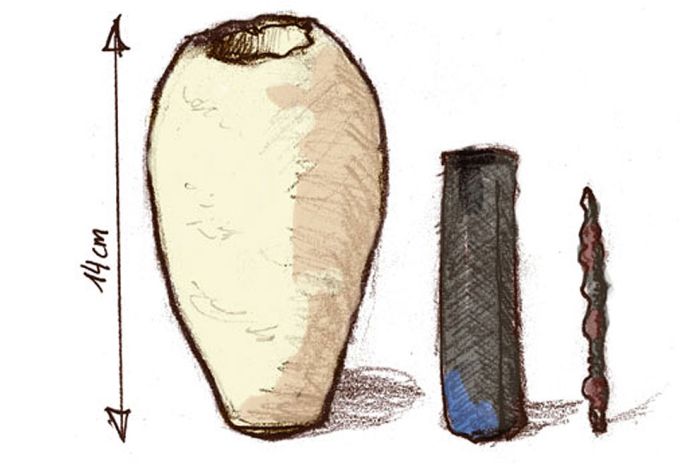 Ciekawostką jest to, że w tym rejonie świata odnajdowano już podobne naczynia, również z prętami w środku i śladami działania kwasu.